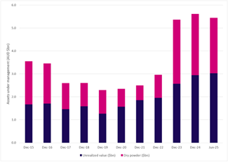 Australia-focused closed-end private credit AUM, Dec 2015 – Jun 2025