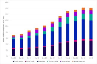 Australia-focused private capital AUM by asset class, Dec 2015 – Jun 2025*
